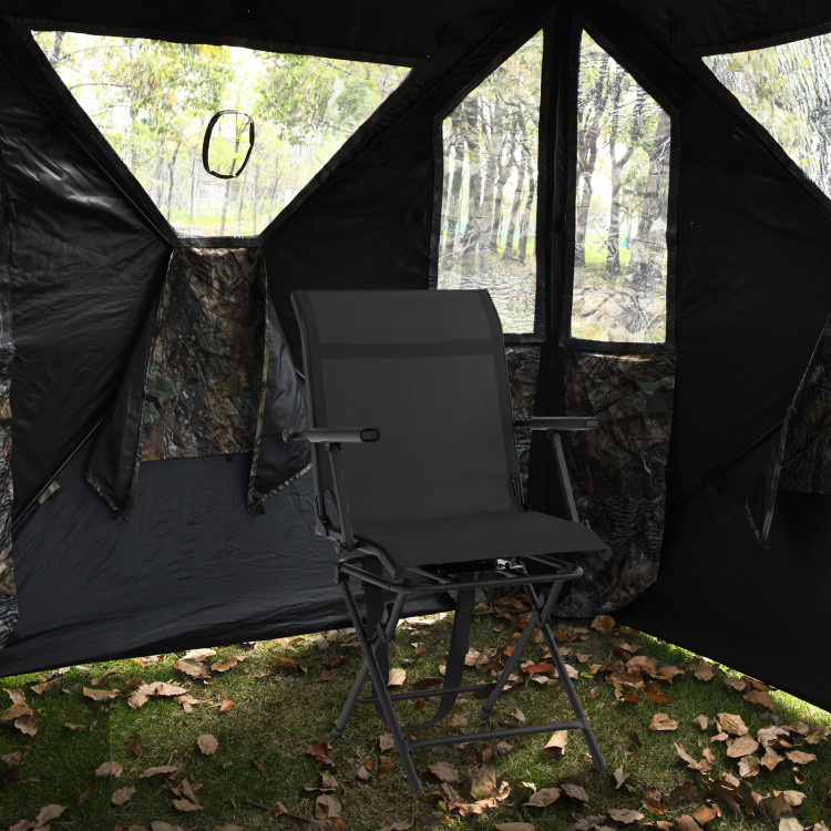 1.Foldable and Light Weight Design: The swivel chair can be folded in few seconds and need no additional tools since the fixing strips and carrying strips are already attached. Besides, it only weighs 14.5 lbs with compact folded size, you can put it on the back and carry it to any spot you want.