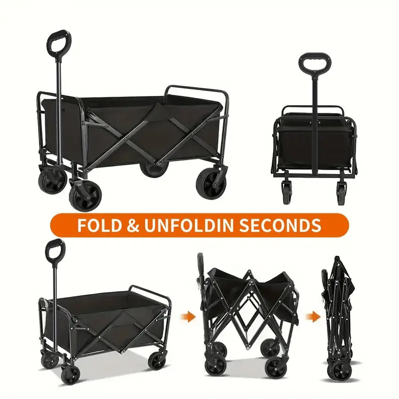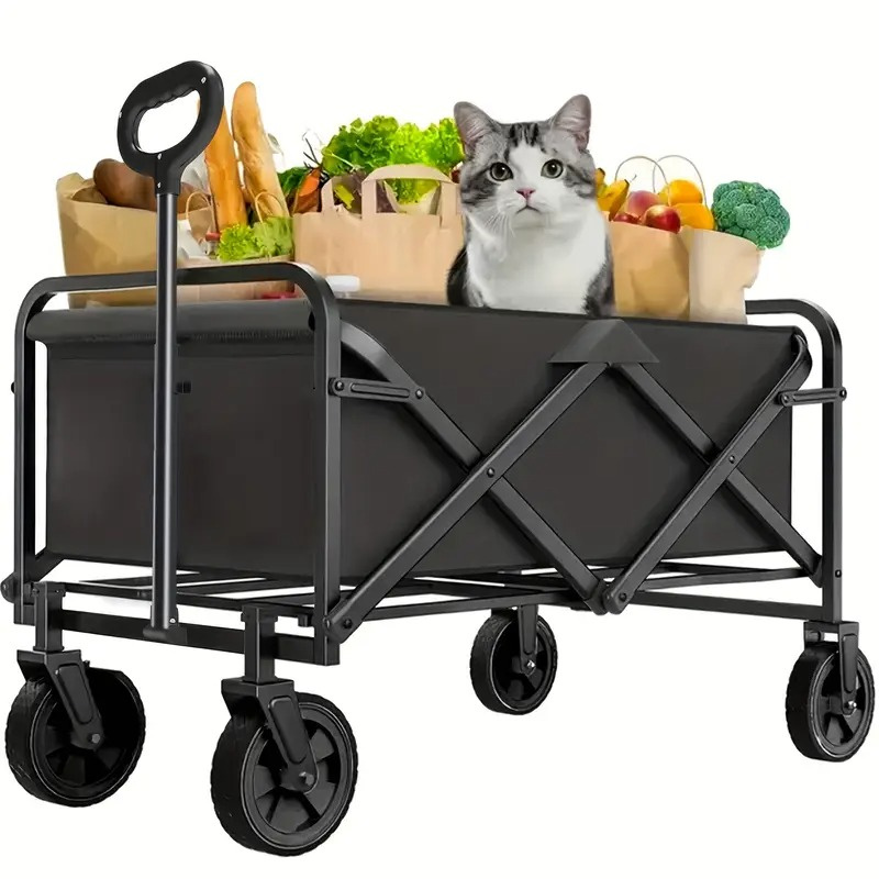 Make outdoor transport easier with this Heavy Duty Foldable Utility Wagon Cart, designed for strength, convenience, and versatility. Constructed with a durable steel frame and strong fabric, it holds up to 220 lbs, making it the perfect companion for hauling groceries, camping gear, sports equipment, or gardening supplies.