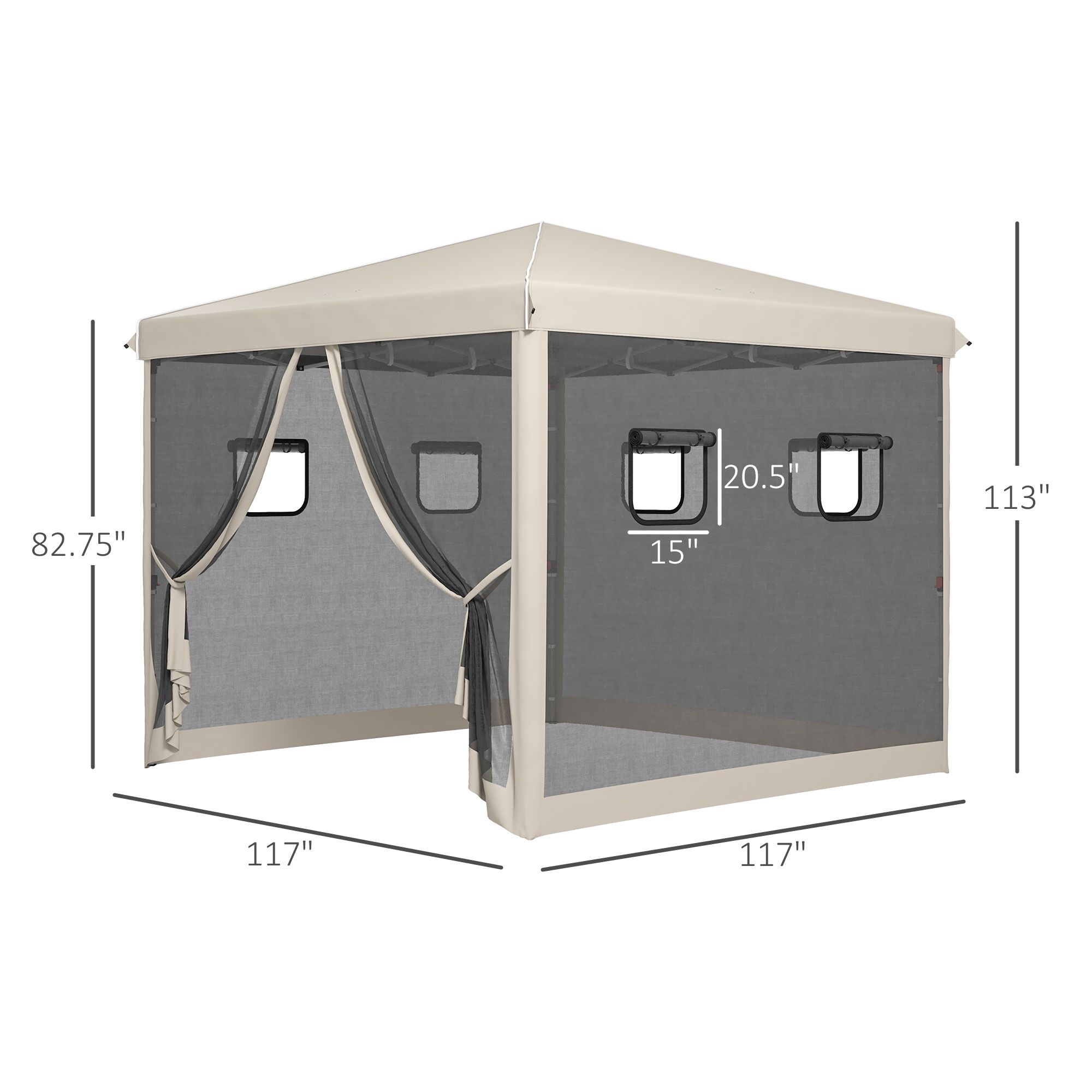 Pop in, pop up, and pop out with Outsunny. Our pop-up canopy has near-instant assembly and a convenient carrying bag so you can quickly fit a crowd. This large outdoor canopy tent provides you shading without fading. Get rid of unwanted winged guests by putting up the included mesh curtains. A set of service windows lets you pass items back and forth between your space, making it excellent for vendors. Get out and get comfy with an Outsunny portable canopy tent.
