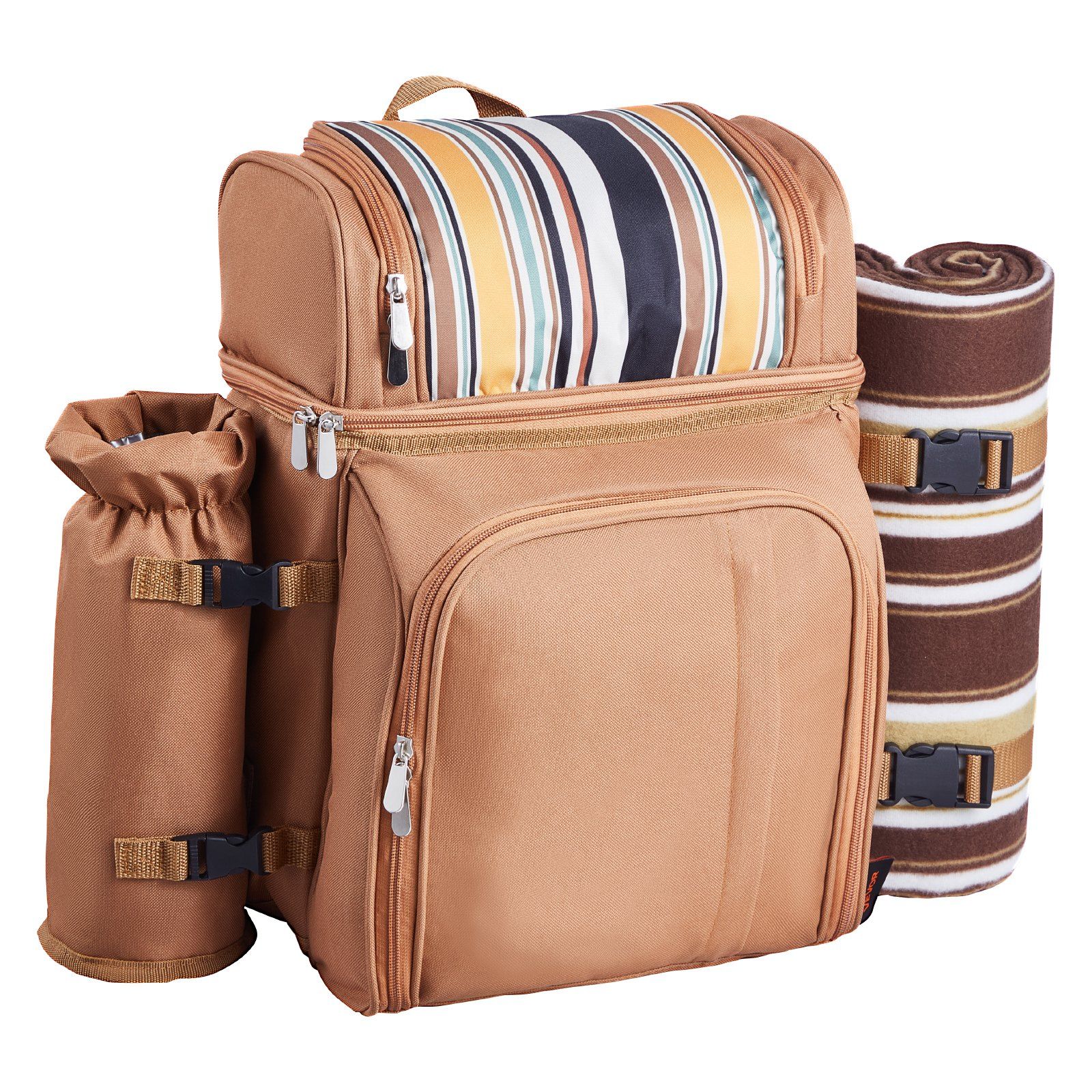 VEVOR Beach Picnic Backpack Bag for 4 Person with Cooler Compartment Brown