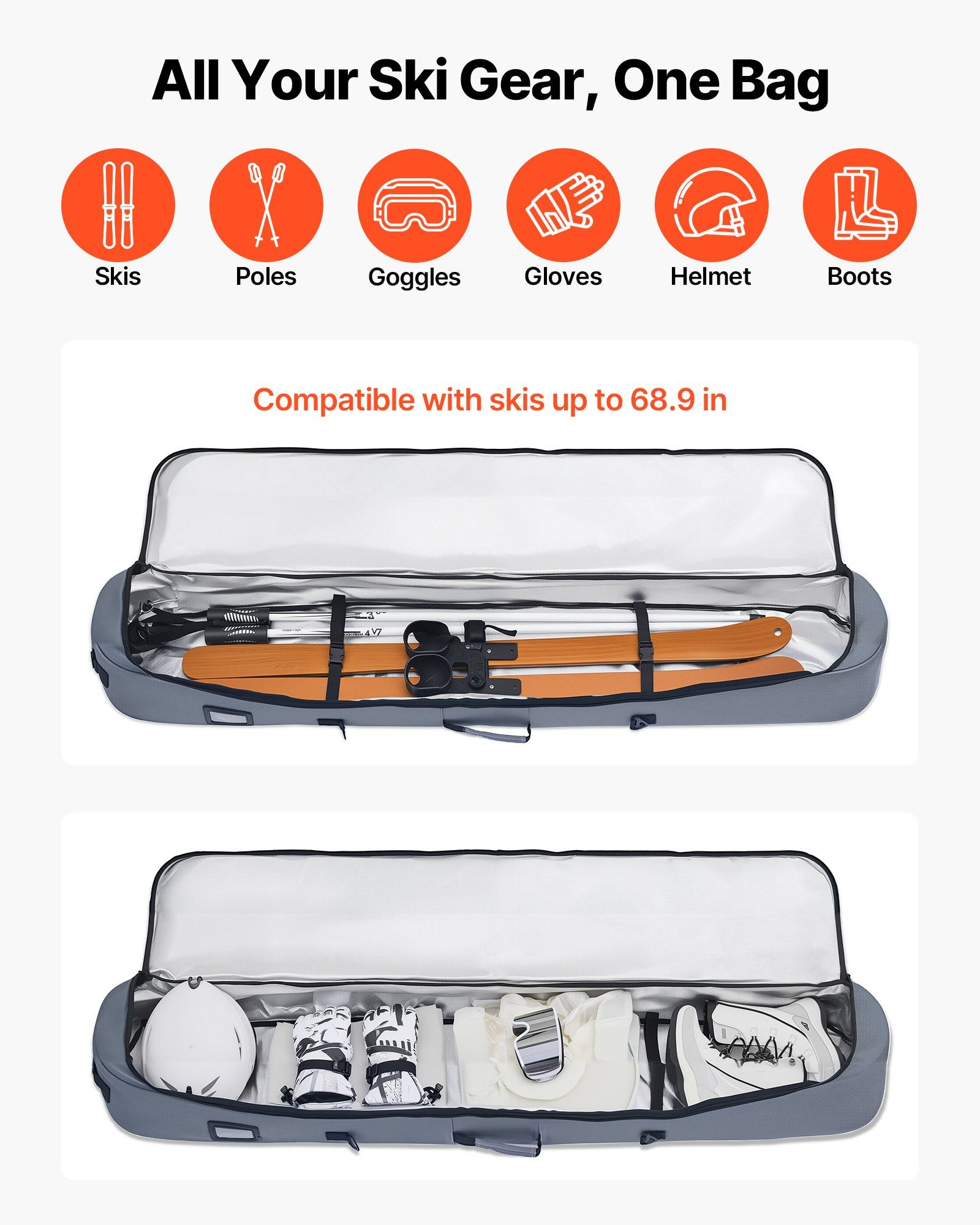 Home > Snowboard Bag, Up to 65 in/165 cm, Padded Skis & Snowboards Bag for Air Travel, 600D Waterproof Oxford Fabric, with Adjustable Inner Straps