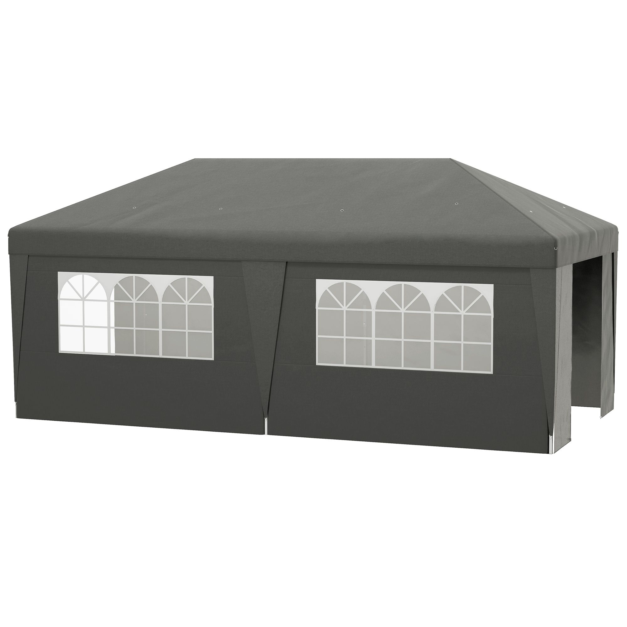 Whether it's a camping trip, cookout, or just a place to protect your outdoor couch, Outsunny's tents for parties go up quick. Coming with a wheeled carrying bag that can roll wherever you need, they unfold fast to provide UV30+ protection. Sidewalls make our pop-up tent a private place, free from glare and wind gusts. Stakes, ropes, and sandbags work together to stabilize your pop up canopy on soft ground and holes on top to drain away the rain. Get out, get comfy, get Outsunny.